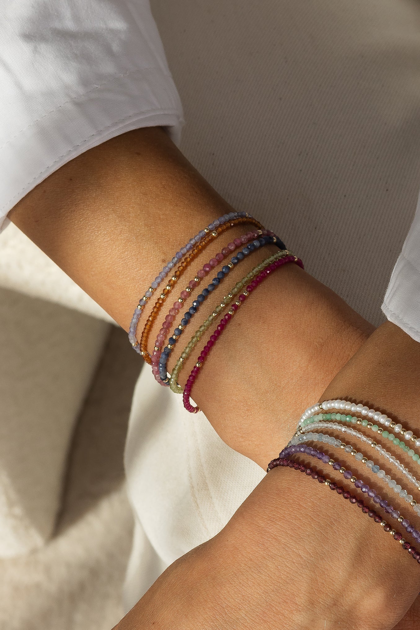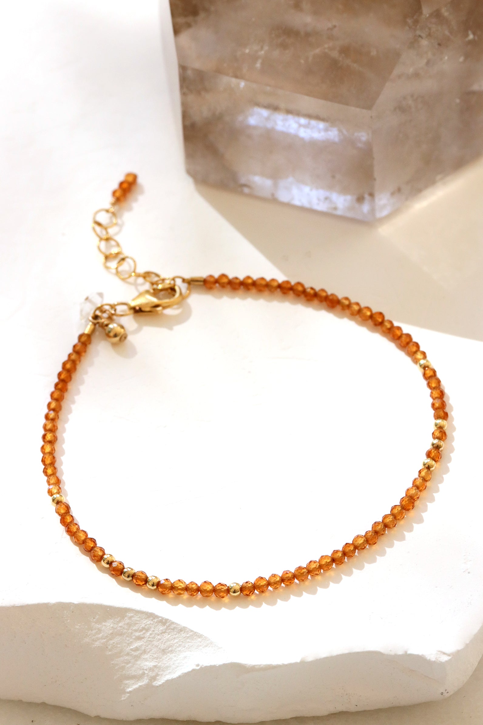 A delicate strand of golden citrine beads, perfect for layering. November’s birthstone, citrine is believed to bring warmth, optimism, and sunny energy wherever you go.